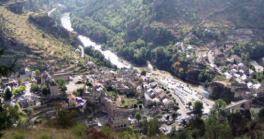 Wąwóz po naszej stronie jest zadrzewiony, po przeciwnej natomiast skalisty z rzadko rozsianymi krzakami. Im bliżej dna tym bardziej stromy. W Ste. Enimie na dnie wąwozu robimy sobie przerwę. Małe miasteczko posiada przepiękną średniowieczną starówkę.