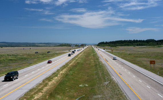 Systematycznie zjeżdżamy do Trans-Canada Highway. Robi się coraz cieplej. Gdy wyjeżdżamy na autostradę, suchy wiatr uderza nas w twarze. Upał 34°C jest nie do zniesienia, szczególnie w połączeniu z wiatrem, który nie chłodzi. Dzisiejsza część trasy wyprawy to jeden z najpaskudniejszych kawałków wszystkich naszych wypraw. Jest prawie tak nieznośnie jak na Litwie.