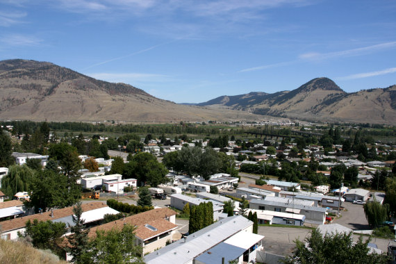 Próbujemy przetrzeć do centrum Kamloops jakąś chytrą drogę z mapy, ale to, co na mapie jest jedną drogą, w rzeczywistości jest gąszczem zanikających dróżek, więc zawracamy i jedziemy tak jak przyjechaliśmy. Strzelam jeszcze zdjęcie dostrzeżonemu tu rachitycznemu, acz autentycznemu kaktusowi rosnącemu naturalnie!