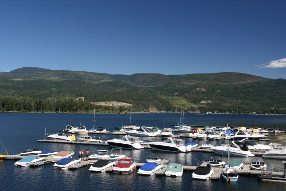 Po śniadaniu przemieszczamy się pod lokalny spożywczak, by skorzystać z budki telefonicznej. Potem do kościoła na mszę o 9:30. W kościele są prawie same babcie. Jedna z nich przygrywa na organach, dokładnie takich jak u Monty Pythona. Po mszy jest impreza - tzn. wszyscy schodzą do czegoś a'la świetlicy, piją kawę, jedzą ciasto i gadają. Zapraszają i nas. Korzystamy, po czym ruszamy w drogę. Teoretycznie jedziemy cały dzień wzdłuż jezior Shuswap Lake, jednak w praktyce trasa momentami odchodzi od jeziora, wznosząc się na olbrzymie wysokości (a przynajmniej w tym upale są one stosunkowo olbrzymie :)). Zbiornik ma dziwny kształt, przez co nawet po przejechaniu przez niedużą przełęcz, trafiamy znów na jego inną odnogę. Jezioro jest mocno wykorzystywane turystycznie - pełno tu ośrodków, jachtów, motorówek itp.