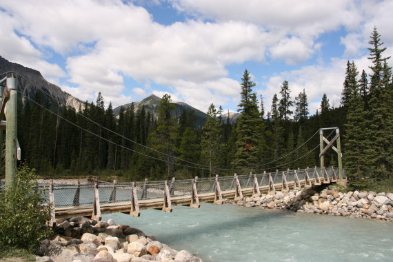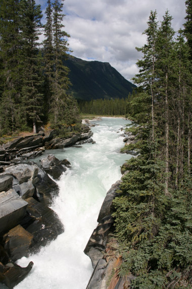Po kolejnym kawałku na rowerze zjeżdżam do wodospadów Numa Falls. Rzeka płynąca przez Kootenay National Park wyrzeźbiła sobie koryto w skale i wygląda jak - nie przymierzając - jakaś rzeka w dolince tatrzańskiej.