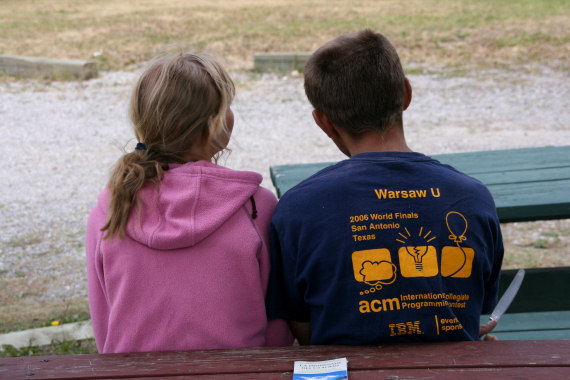 Odpoczywam na ławce z widokiem na basen i czekam na Gosię i Pawła, którym uciekłem. Razem kończymy zjazd do samego Radium. Okazuje się, że camping jest gdzieś na uboczu. Ja z Pawłem robię zakupy, a Gosia wyrusza wybadać camping. Już wcześniej próbowaliśmy zarezerwować na nim miejsce przez telefon, co byłoby wskazane, ponieważ Kanada ma teraz jakiś długi weekend, ale nie udało się. Po zakupach Gosia mówi, że camping jest za straszną górą, jest pełny i trzeba się udać na overflow camping (taki dodatkowy na wypadek przepełnienia), ale z mapki nie wynika jasno, gdzie on jest. Wracamy więc już wszyscy razem do campingu, przy czym Gosia zostaje w połowie podjazdu, bo jest zupełnie wyczerpana podjazdami. Camping mieści się około 120m powyżej miasteczka. Jakoś znajdujemy tą łączkę overflow - wysoką trawę przy parkingu na uboczu. Paweł wraca po Gosię, ja rozbijam namiot i zabieram się za gotowanie. Dodatkowo, jest to chyba największy camping, na którym spaliśmy. Wyprawa po wodę, to jakieś 1,5km pieszo w każdą stronę. Po kolacji ruszamy rowerami na poszukiwanie szafek antyniedźwiedziowych. Znalezienie ich zajmuje nam trochę czasu, tym bardziej, że jest już zupełnie ciemno.