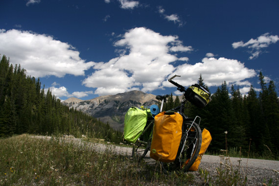 Podjazd na Sinclair Pass (1486 m n.p.m.) nie jest bardzo długi, pedałowało się całkiem fajnie. Najpierw dojeżdża się do świetnego punktu widokowego z panoramą Gór Skalistych, a potem właściwie po płaskim do przełęczy.