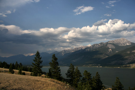 Czekam na rest area z widokiem na kolejne jezioro Columbia Lake i góry po drugiej stronie.