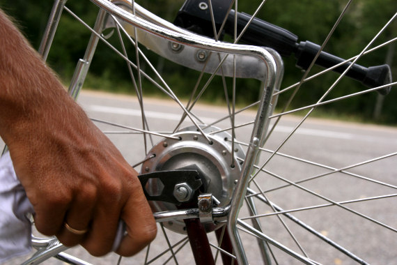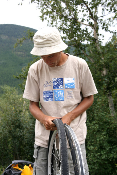 Gdzieś tutaj jesteśmy najbliżej Stanów Zjednoczonych na tej wyprawie. Gdybyśmy pojechali na południe, po 30km dojechalibyśmy do Montany. Ale w Elko odbijamy na północ. Na tutejszej stacji benzynowej Parysowie kupują suszone paski wołowiny do pogryzania (Gosia jest poważnie mięsożerna :)) Po przejechaniu kawałka, Paweł przebija sobie dętkę na ostrym kamieniu. Powietrze momentalnie schodzi do zera. Wracamy kilkaset metrów, bo akurat była zatoczka. Paweł zmienia oponę, ja robię zdjęcia, Małgosia wcina wołowinę :) Idzie całkiem szybko.