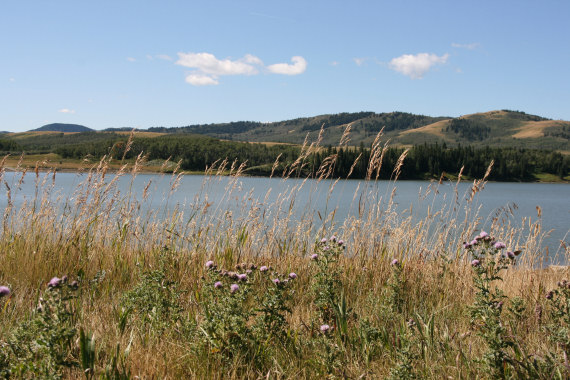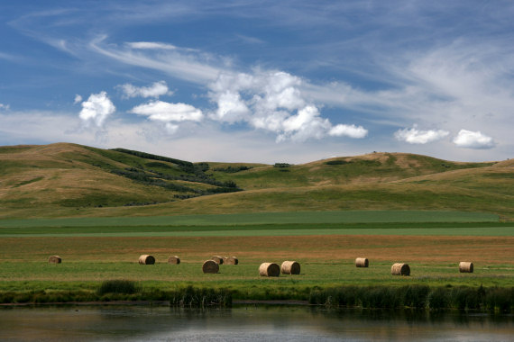 Przeważają pastwiska nad żółtą tonacją pól uprawnych. Pogoda jest ładna, jedzie się przyjemnie. Zjeżdżam do Bar-U-Ranch - jakiegoś ponoć słynnego i historycznego rancza. Sugerowałyby to krzykliwe drogowskazy, dużo samochodów na parkingu i krzykliwe drogowskazy. Robię jednak tylko kilka zdjęć starych powozów na zewnątrz. Żeby wejść na teren rancza, trzeba zapłacić jakąś nierozsądną kwotę.