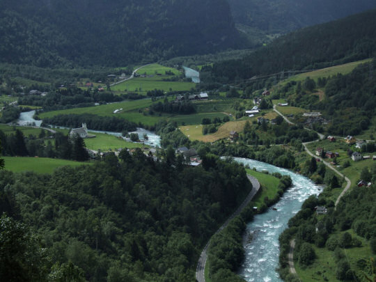 Gdy kończymy nasze pyszne kaszki, nijaka pogoda przeradza się w pogodę wyraźnie złą. Zaczyna lać. Zjeżdżamy na dół i jedziemy wąską drogą wzdłuż nie nadzwyczajnego fiordu Lusterfjorden. Paweł i Tomek uciekli nam z pola widzenia, zostałem z Marcinem gdzieś bardziej z tyłu. Wjeżdżamy do tunelu, który pojawił się na naszej trasie. Tunel jest nieoświetlony, Marcin jedzie przodem. Lampki mamy gdzieś na dnie sakw (pamiętajmy, że w Norwegii nie ma nocy o tej porze roku), więc mamy nadzieję, że wkrótce zobaczymy światełko w tunelu. Po 100 metrach robi się ciemno, a po kolejnych kilkudziesięciu absolutnie ciemno. Zwalniam, żeby wyciągnąć przednią lampkę. Marcin przede mną krzyczy, żebym się nie zatrzymywał, bo on już widzi koniec tunelu. Wkrótce znika mi w ciemności, podczas gdy ja grzebię w sakwie. Po chwili słyszę głos: "Marcos, jesteś tam? Nic nie widzę!". Po przebyciu drugiego ciemnego tunelu orientujemy się, że skrzynki pocztowe po obu stronach tuneli są elementami pionierskiego programu społecznego wyposażania rowerzystów w oświetlenie tunelowe. W skrzynkach znajdowało się po kilka latarek, które rowerzysta może nieodpłatnie wypożyczyć i zostawić po drugiej stronie tunelu. Ciekawe, czy w Polsce ten program miałby szanse? Chyba niezbyt, bo po pierwsze, nie ma tu za bardzo tuneli, a po drugie rowerzyści mogliby zapominać o obowiązku pozostawienia lampek po drugiej stronie...