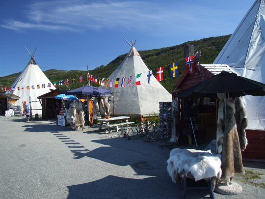 Po złożeniu obozu i wyruszeniu, przejeżdżamy zaledwie kilkaset metrów, by zatrzymać się na parkingu dla podróżnych po drugiej stronie rzeki. Tu wykorzystujemy gorącą wodę do śniadania oraz prania. Obok parkingu stoi dziwaczny pomnik - konstrukcja z wielkich głazów i łysych drzew. Od rana jedziemy pod górę, aż do przełęczy Heia (234mnpm). Na tej przełęczy robimy postój na wielkim parkingu. Stoi tu masa samochodów, a to za sprawą Saamów - plemienia zamieszkującego krainę Finnmark, a mieszkającego w malutkich domkach lub barakach. Saamowie zwykle mają własne generatory prądu, a wodę pobierają ze strumieni - starają się być niezależni. Z ich dawnej kultury pozostały głównie takie parkingi, na których są ustawione wigwamy. Takie wigwamy służą za stoiska handlowe, z których Saamowie się utrzymują sprzedając lokalne pamiątki.