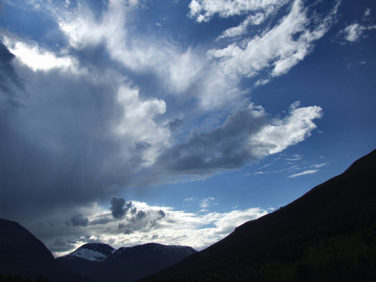 Po zjechaniu na dół okazuje się, że nie tylko zza naszych pleców, ale i z innych stron nadchodzą burzowe chmury. Na jednym z postojów obserwujemy odległe błyskawice. Zadziwiająca sprawa, ale ani kropla deszczu nie spadła na nas, a ciekawe chmury dodały uroku pięknym widokom na fiord i otaczające go góry.
