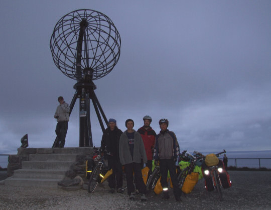 W recepcji jest nawet księga, do której wpisują się rowerzyści, którzy tu dojechali. Na parkingu przed kompleksem stoi pełno autokarów, którymi przyjechały stosy ludzi różnych narodowości. Większość jest pełna podziwu dla nas. W sumie niewielu jest rowerzystów jadących na Nordkapp, szczególnie w takiej pogodzie. Przed wyjazdem wydawało mi się, że będzie ich więcej. Co chwilę ktoś pstryka nam zdjęcie, albo chce sobie z nami zrobić zdjęcia. Fotografujemy się oczywiście pod słynnym globusem.