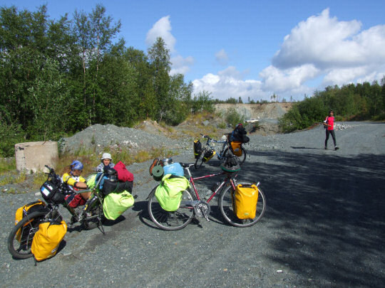 Gdy tak stoimy i robimy zdjęcia, podjeżdża do nas śmieszny Rosjanin na rowerze, który właśnie jechał do lasu na jagody. Zagaduje o byle co, opowiada o przyjacielu z St. Petersburga, który przysłał mu małą ikonę (pokazuje nam ją), mówi co trzeba zobaczyć w St. Petersburgu oraz instruuje jak znaleźć w Niklu kantor wymiany walut i wagzał, czyli dworzec. Po długiej rozmowie ruszamy do Nikla, wymieniamy waluty i znajdujemy sklep spożywczy (magazin).