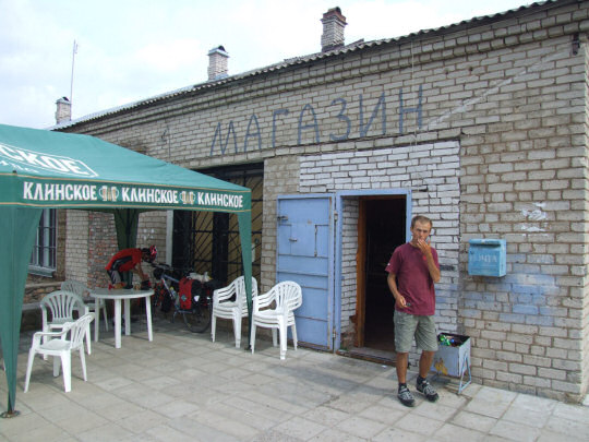 Dalej jedziemy właściwie zupełnie płaską trasą. Jest dosyć upalnie. Trochę później robimy postój przy "magazinie" czyli sklepie, kupuję tutaj kilka paczek pamiątkowych rosyjskich papierosów :)