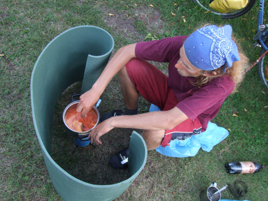 Po zakupach w łotewskim sklepie zaczynamy szukać noclegu w Saulkrasti. Ku uciesze Marcina, znajdujemy go na budowie, na dość zaśmieconym trawniku. Marcin ma traumatyczne przeżycie jeszcze z wyprawy 2004, z ówczesnego noclegu na budowie (który był zupełnie fajny). Gotujemy sobie makaron z łotewskimi zupami z torebki :)